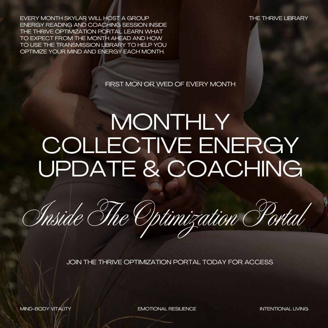The THRIVE Transmission Library and Optimization Portal becomes your toolkit and your steady sidekick, helping you stay grounded, confident, and resourced as your life continues to expand.